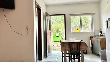Quarto com 1 casa de casal + roupa de cama, 1 beliche, TV, geladeira, fogão, pia e utensílios, mesa com 4 cadeiras e banheiro com chuveiro quente - Checkout as …
