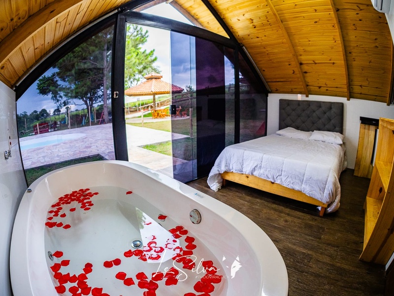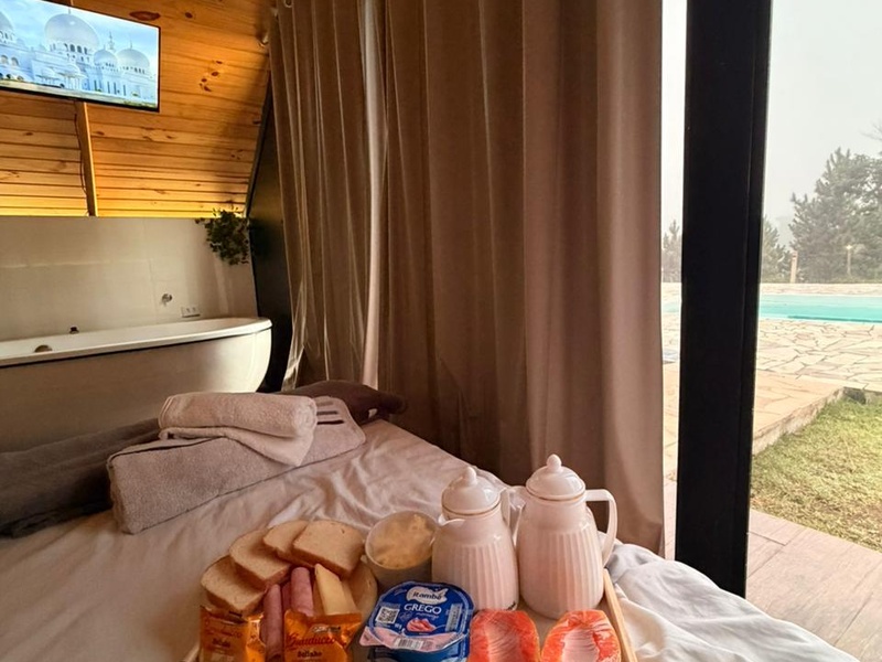 🏡 Estrutura do espaço: ✨ Área gourmet 🔥 1 churrasqueira individual 🏊♀️ 2 piscinas compartilhadas 🌴😌 Redário compartilhado • Chalé 3: 🛏️ 1 quarto com cama de casal + colchão de solteiro avulso ✅ ☕Café da manhã executivo incluso 🛁 Banheira aquecida 🚿 Banheiro privativo 🚻 2 banheiros externos compartilhados (masculino e feminino)