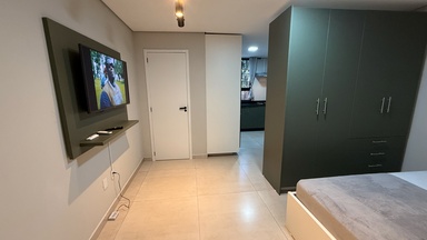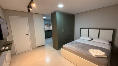 Flat sofisticado, moderno e bem equipado para quem busca conforto com um toque de elegância.
