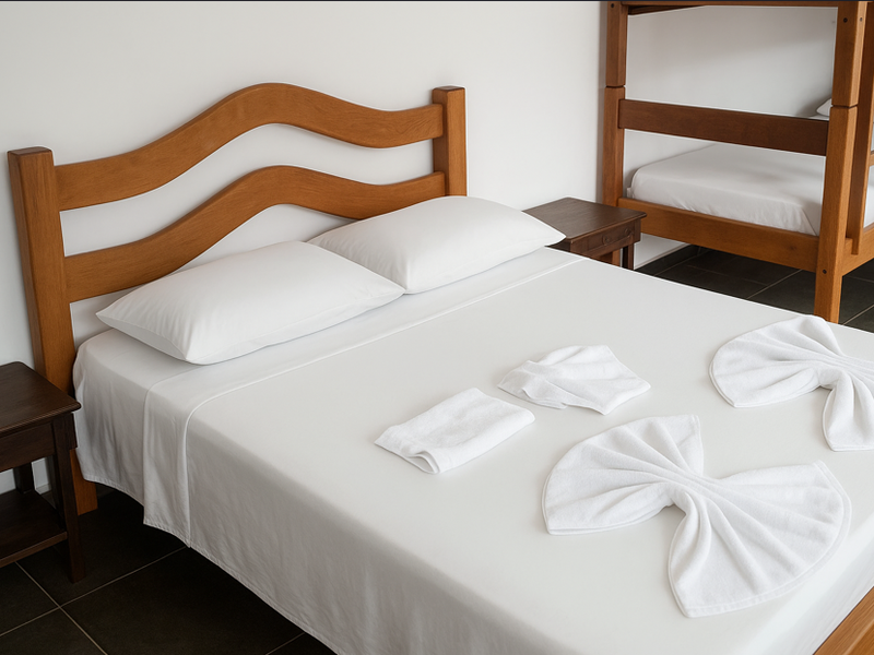 Apartamento Família – Praticidade e Conforto para Todos Ideal para famílias que buscam descanso e comodidade, o apartamento é equipado com uma cama de casal e uma cama de solteiro ou beliche, acomodando com conforto adultos e crianças. Conta com banheiro privativo, TV, ventilador, enxoval completo e amenities de cortesia, garantindo praticidade e bem-estar durante toda a sua estadia