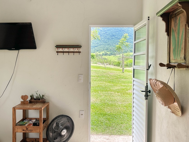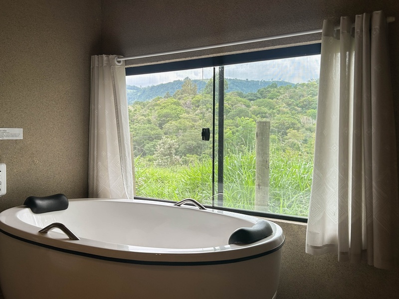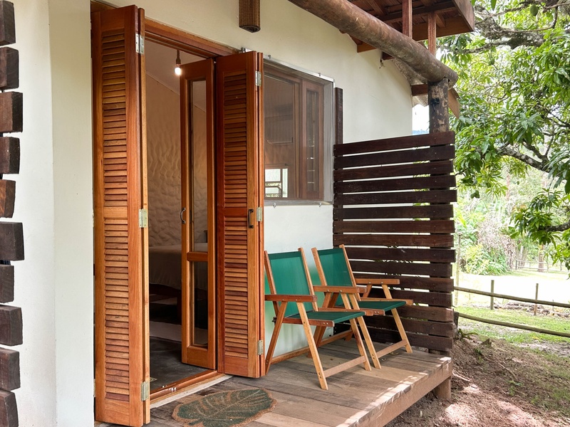 Quarto com amenidades extra para seu maior conforto e desfrute. Tem varanda com deck exclusivo, e acesso a espaços comum com cozinha, piscina climatizada, trilha e área de lazer. Tem mínimo de 2 noites de final-de-semana.