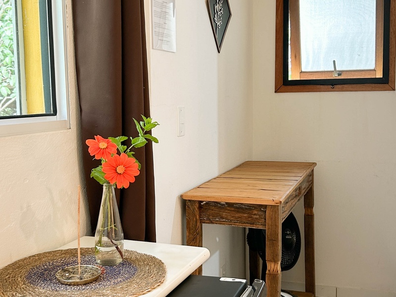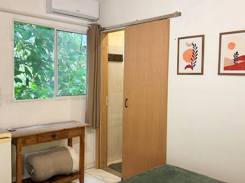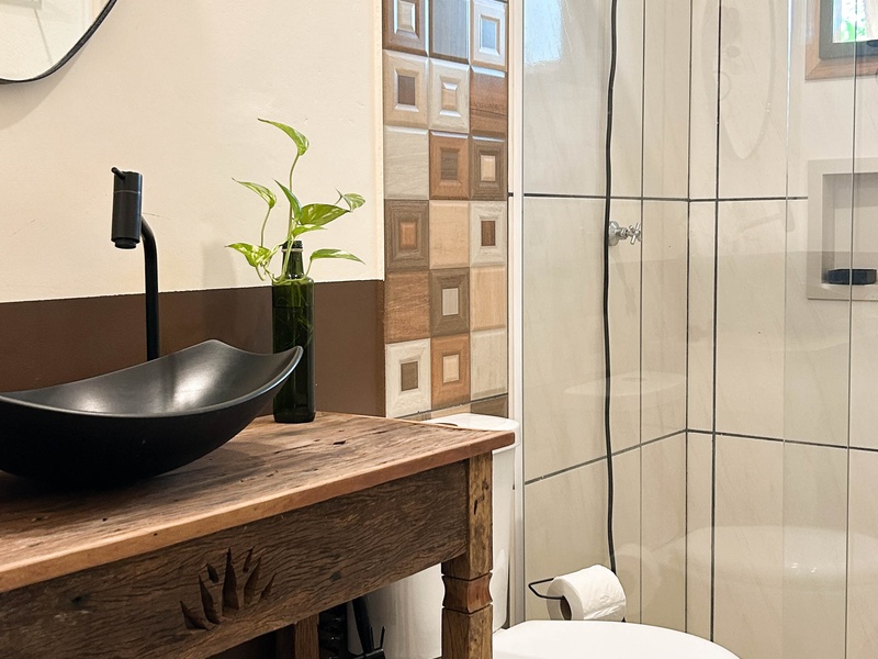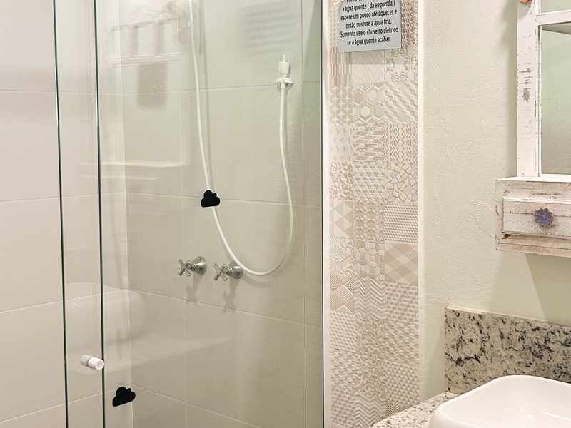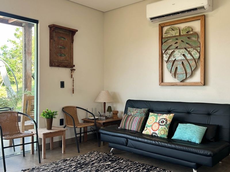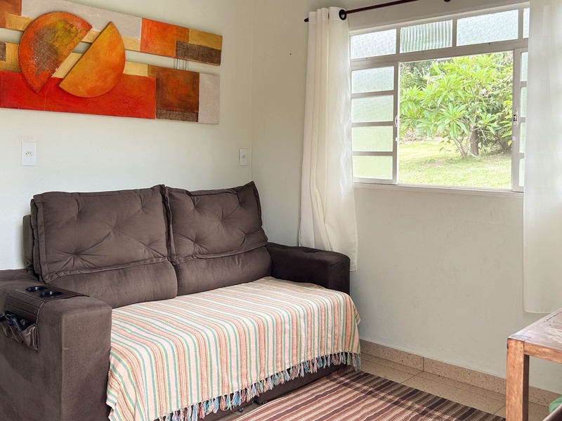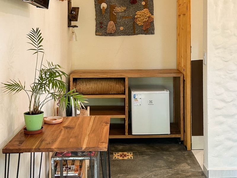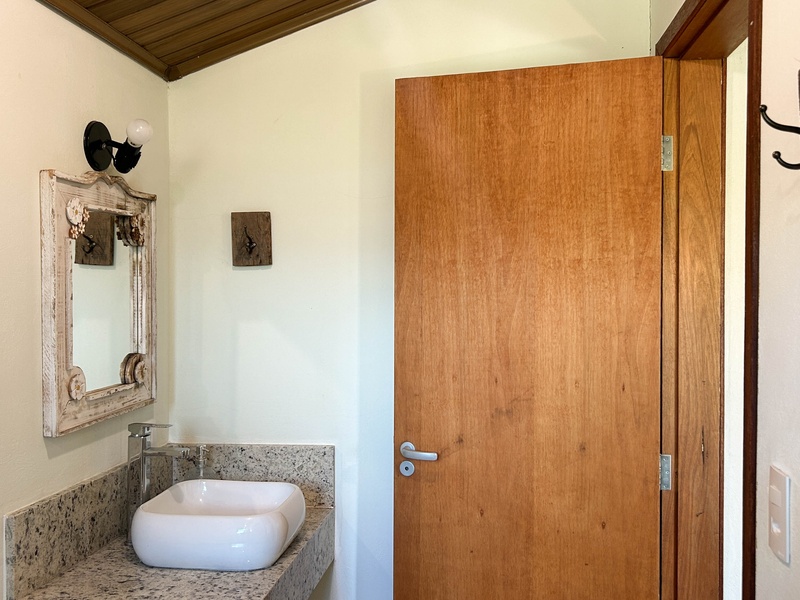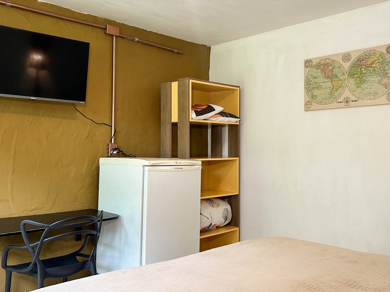 Nossa única suíte que pode receber famílias, conta com uma cama beliche extra, além da cama de casal. Com acesso a espaços comum com cozinha, piscina climatizada, trilha, restaurante e área de lazer.