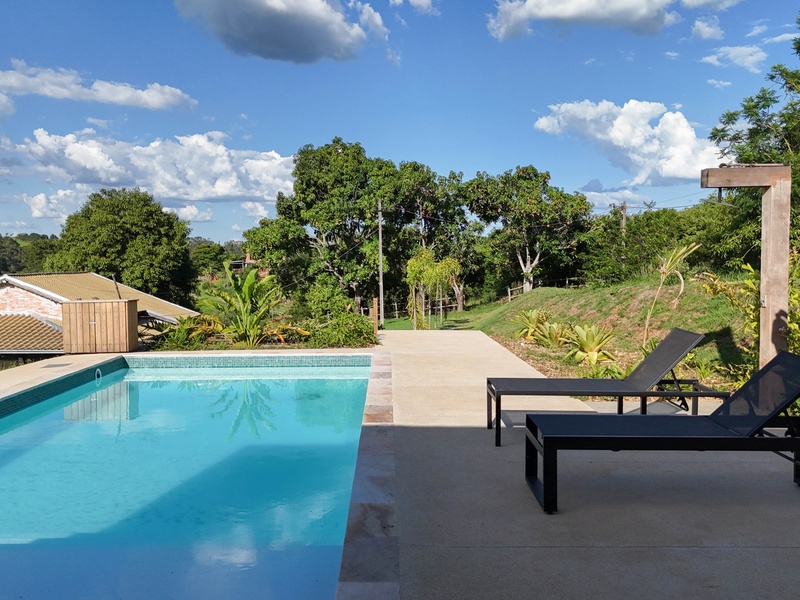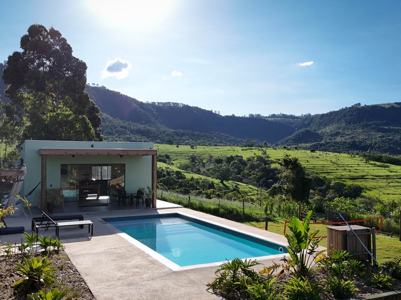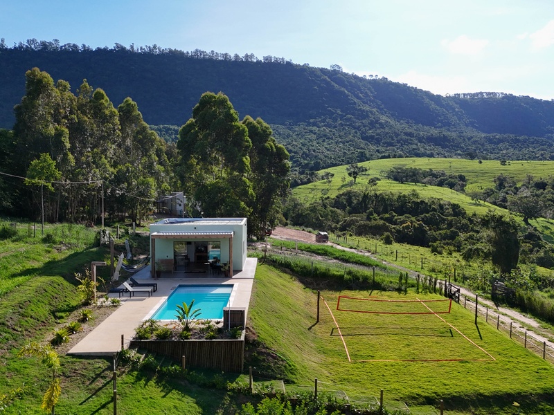 O Chalé Aroeira é elegante, robusto e tem uma das vistas mais lindas da fazenda. Casa completa de 3 quartos e 2 banheiros, conta com área gourmet em uma construção independente, quadra de grama para beach tennis e piscina climatizada exclusiva do chalé. Comporta grupos e famílias maiores, mas também tem preços especiais para grupos menores.