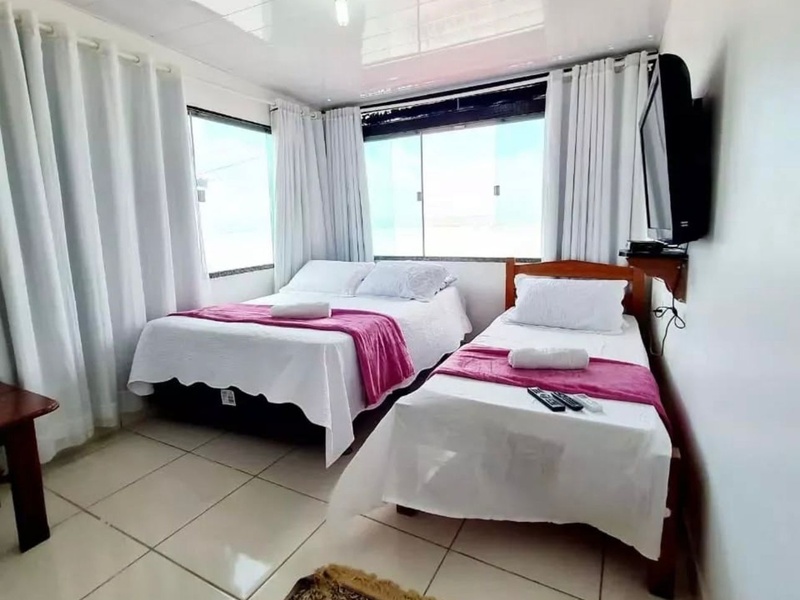 Suíte com capacidade para até 4 pessoas (Hóspede adicionais R$70,00) Central de ar - TV - Banheiro privativo - Roupa de cama
