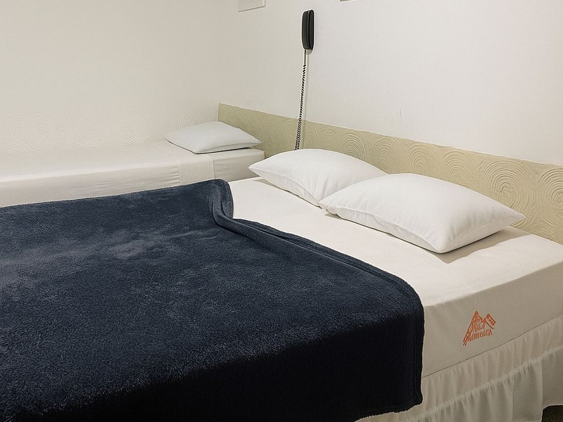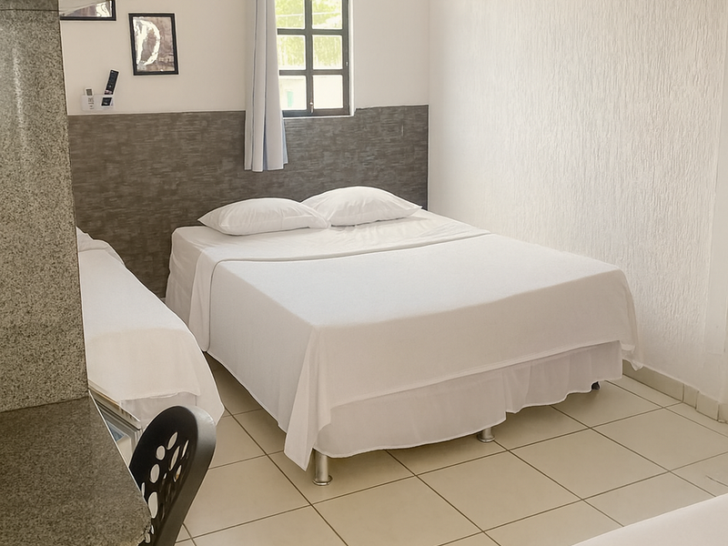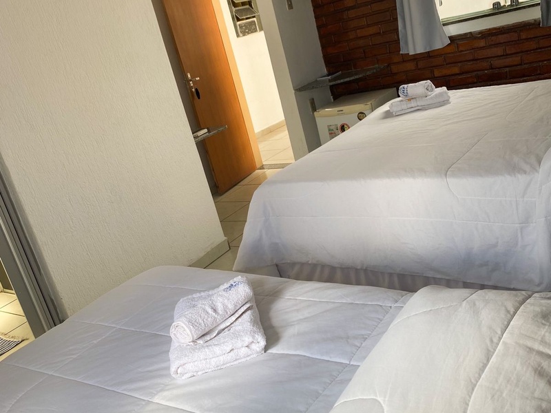 Quartos com três camas, podendo ser uma cama de casal e uma de solteiro, ou tres de solteiro (verificar disponibilidade). (REALIZAMOS CHECK IN ATÉ AS 22H)