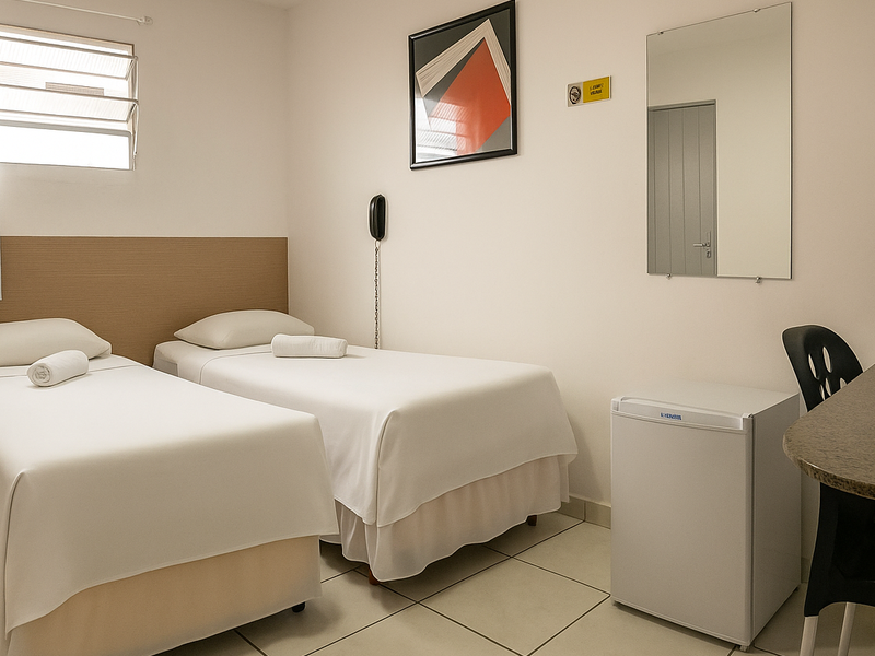 Quarto com duas camas de solteiro (há possibilidade de junta-las). (REALIZAMOS CHECK IN ATÉ AS 22H)