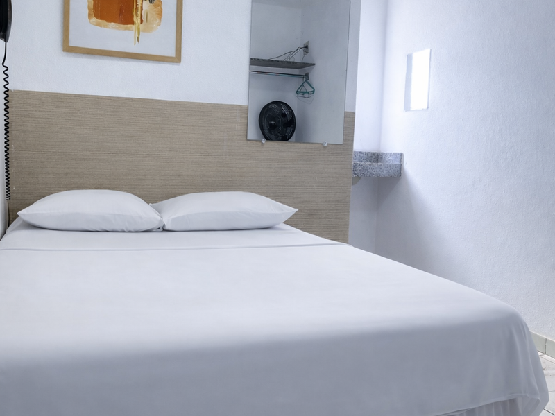 Quarto com cama de casal e ventilador. (REALIZAMOS CHECK IN ATÉ AS 22H)