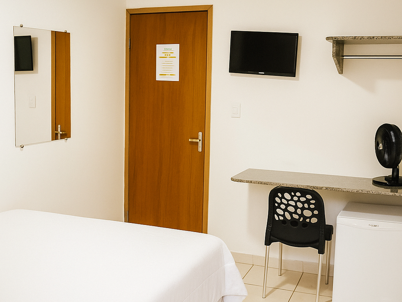 Quarto simples com uma cama de solteiro. (REALIZAMOS CHECK IN ATÉ AS 22H)