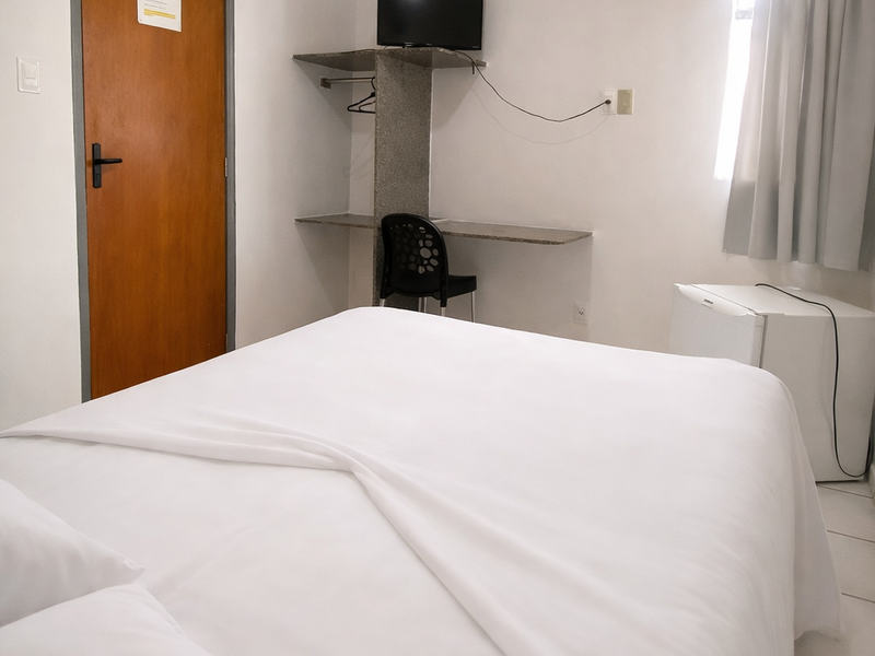Quarto com cama de casal e ar condicionado. (REALIZAMOS CHECK IN ATÉ AS 22H)