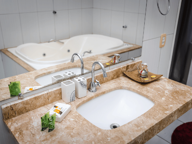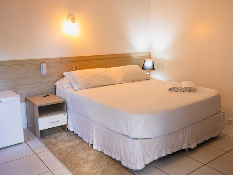 Com suítes de alto padrão nas categorias Standard, Executiva e Master, o hotel oferece ambientes amplos, climatizados e cuidadosamente decorados. A Suíte Master se destaca pela banheira de hidromassagem, ideal para momentos especiais e total relaxamento.