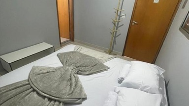 "Opção econômica e funcional. Equipado com 2 camas de solteiro, ventilador, chuveiro quente e Wi-Fi liberado. Perfeito para estadias rápidas e objetivas.