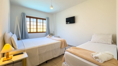 Perfeita para pequenos grupos ou famílias, a Suíte Tripla com Vista da Piscina oferece praticidade e harmonia em um ambiente cuidadosamente preparado. A vista para a piscina adiciona um toque …