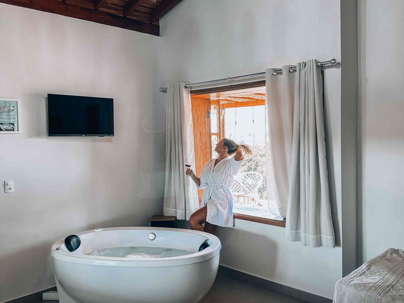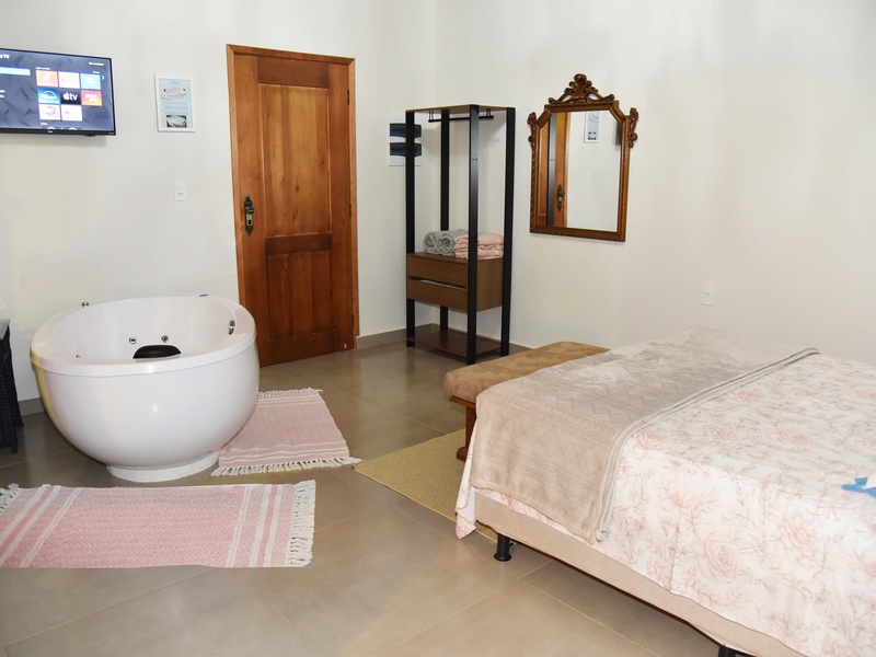 A pousada conta com suítes muito bem estruturadas, sua maioria com pé direito duplo e geralmente com capacidade para 3 pessoas em cada Suíte (verificar especificações do Suite). Todas suítes, exceto a nº 4, possuem Smart Tv e ar-condicionado. Temos 2 cozinhas compartilhadas para uso das Suítes 1 a 6. O preço diária com café da manhã caprichado! A pousada Vossa Excelência tem a Cachoerinha do surfista, lago de pesca, salão de festa com sinuca, forno a lenha e de pizza, dois mirantes, Piscina, Sauna, terraço com Hidro (sob prenotação), Redes, Playground, 3 churrasqueiras compartilhadas, Ofurô, fogueira (lual), entre outras incríveis experiências. Seu pet aqui é bem vindo!
