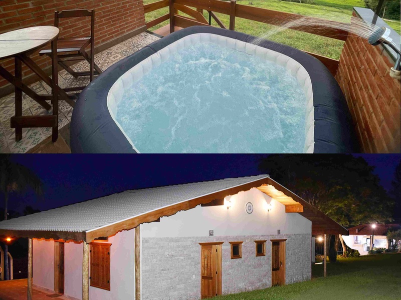 A Suíte 8 possui Hidro no quarto, 1 cama Queen e 1 de solteiro, Smart Tv, ar-condicionado e área cozinha churrasco privativa. Diária com Café da manhã! Check in 14h / Check out 12h