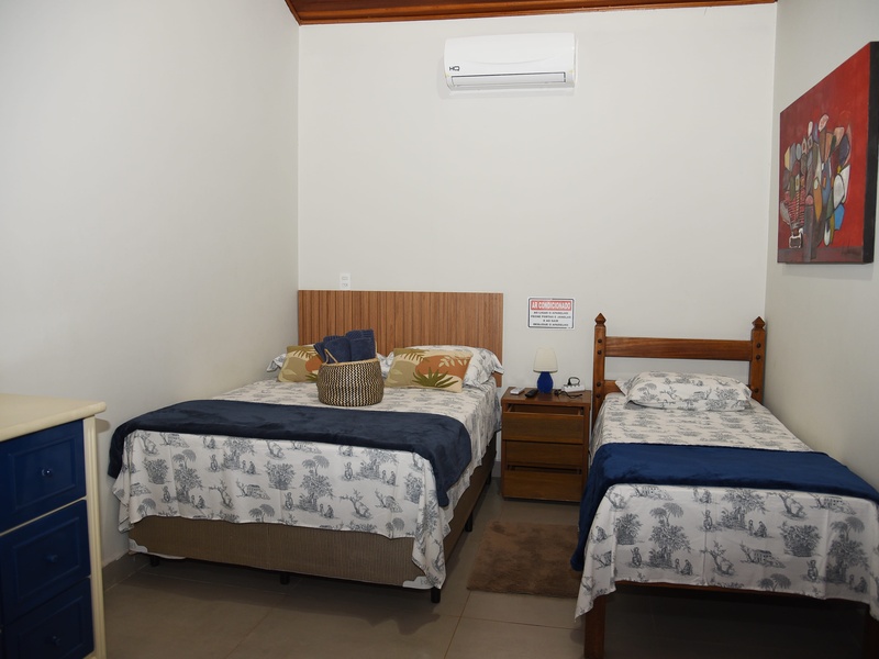 A Suíte 2 possui uma cama de casal e duas de solteiro, Smart Tv e ar-condicionado e cozinha compartilhada. Preço diária com café da manhã! Check in 14h / Check out 12h