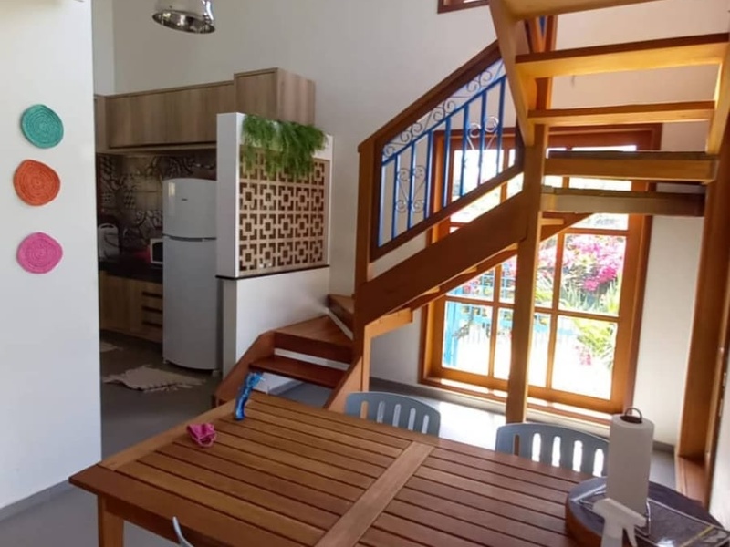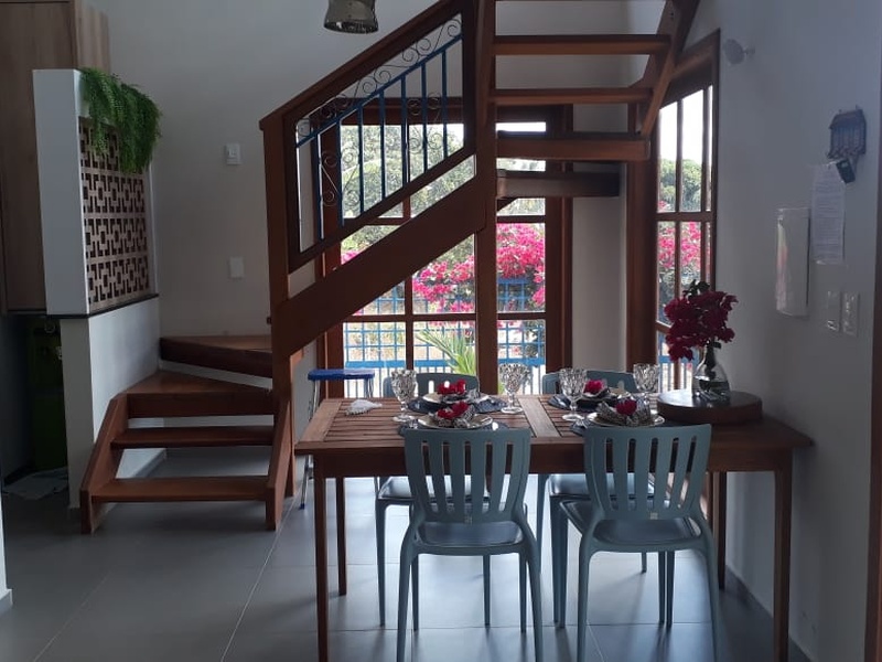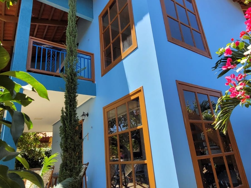 CASA AZUL- Casa Azul — Vivendas da Serra A Casa Azul é uma casa privativa localizada dentro da Pousada Vivendas da Serra, ideal para famílias ou grupos que buscam conforto, espaço e praticidade. Todas as hospedagens incluem café da manhã. A casa dispõe de sala de estar com TV, cozinha bem equipada com panelas, talheres, taças e eletrodomésticos, oferecendo total comodidade durante a estadia. No térreo, há um quarto com ar-condicionado e banheiro social. No piso superior, a Casa Azul conta com uma suíte com ar-condicionado, garantindo mais privacidade. Possui varanda no térreo e no primeiro andar, ideais para momentos de descanso e contemplação. Os banheiros contam com chuveiro elétrico.