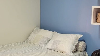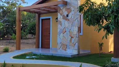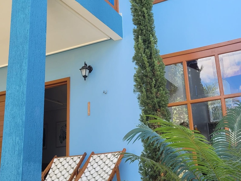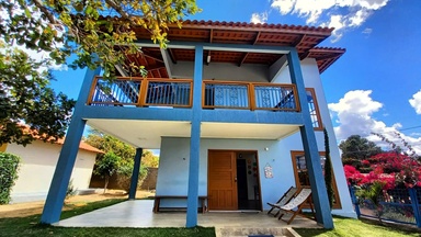 Casa Azul, com 2 quartos, ideal para famílias ou grupos, acomodando até 6 pessoas;