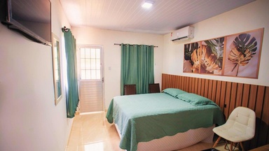 Vista para o lago Banheiro privativo Ar-condicionado Wi-Fi Frigobar Chaleira elétrica Kit de amenidades Smart TV com canais abertos via antena